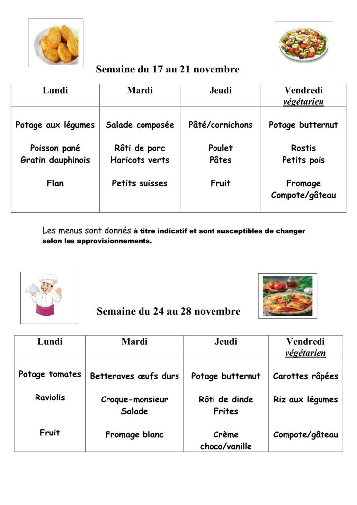 Les menus de la cantine sont proposés tous les 15 jours